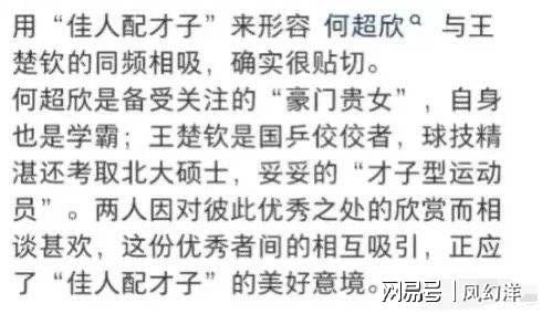 但是,有网友却是认为这两人很般配,甚至有这种想法的网友还不在少数,他们都觉得王楚钦和何超欣是门当户对,何超欣是赌王女儿,王楚钦是国家队运动员,何超欣学历高,王楚钦则是奥运冠军。